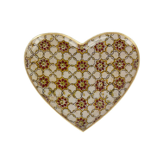 Plateau coeur métal émaillé Zellige brick 15x15, bord doré