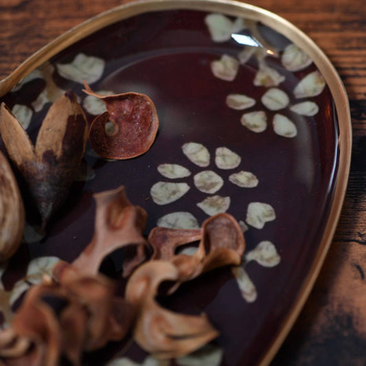 Plateau coeur métal émaillé Acajou 15x15, bordure dorée