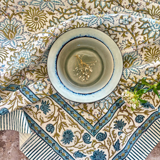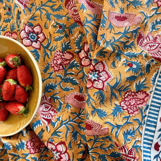 Nappe "Jardin d'été" coton imprimé main blockprint