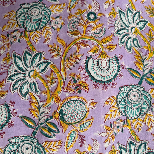Nappe "Versailles" lilas coton imprimé blockprint 150 x 220