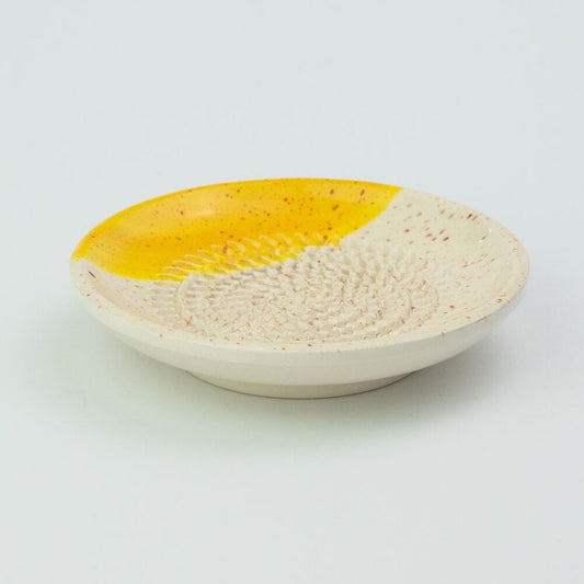 Râpe à l’ail PETIT Plat en céramique fait à la main / jaune