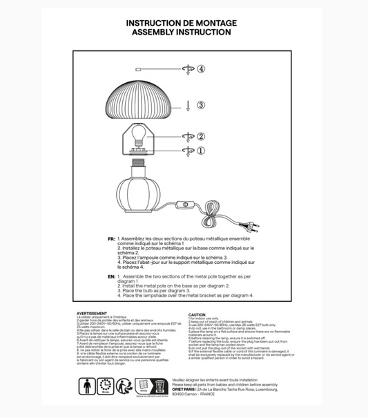LAMPE CHAMPART INDIGO D25XH22CM VERRE