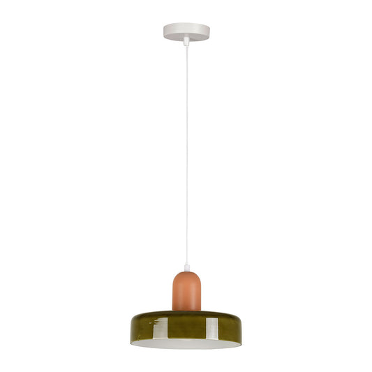 SUSPENSION ATELIER BRUN+VERT D25X15CM VERRE+FER
