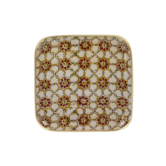 Plateau en métal émaillé Hoya 20x20 cm, bordure dorée