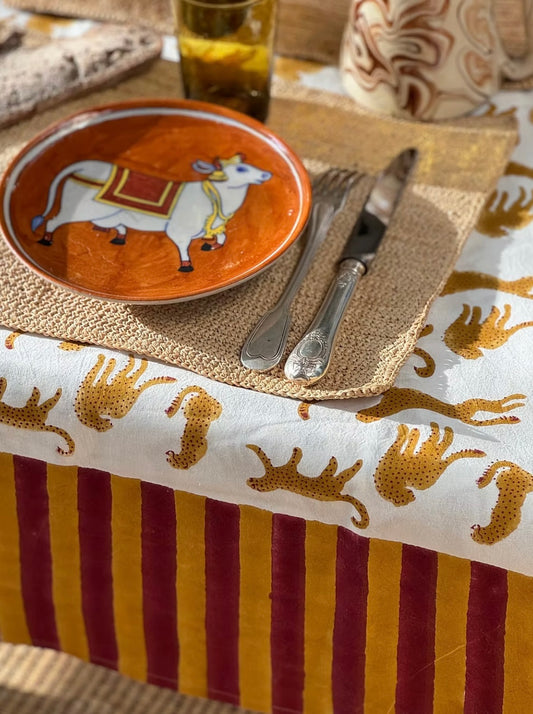 Nappe Indienne animal - Fauve écru 170x250 cm