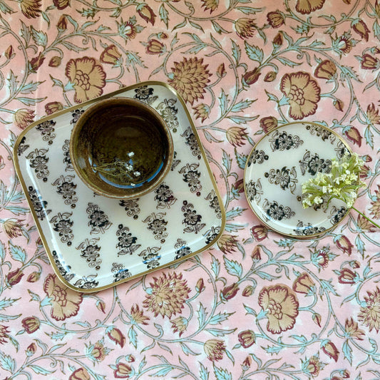 Plateau en métal émaillé Hoya 20x20 cm, bordure dorée
