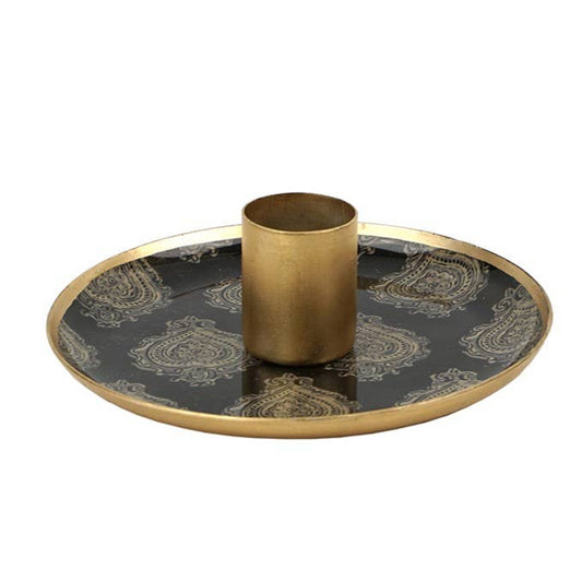 Petit plateau rond métal émaillé Arles noir, bord doré