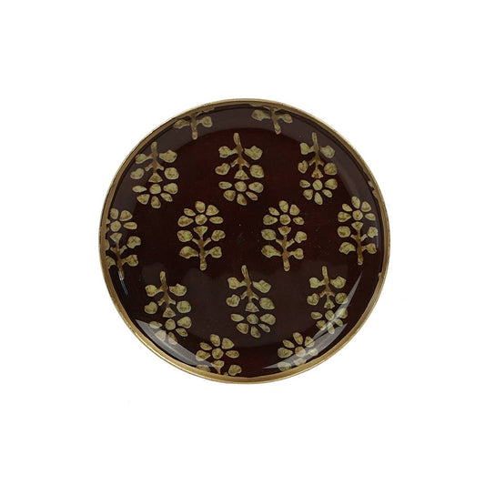 Petit plateau rond métal émaillé Acajou, bordure dorée