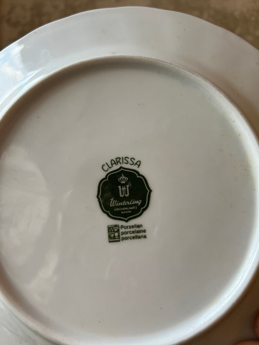 Assiettes à dessert vintage en porcelaine fleurs vertes