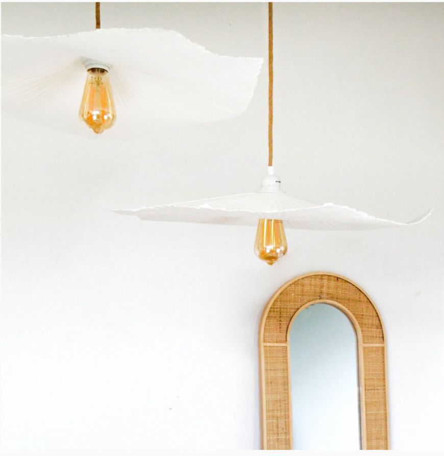 Abat-jour original en papier mâché réalisé à la main dont la forme est asymétrique et les bords irréguliers. Chaque abat-jour est unique : la forme et la dimension peut légèrement varier. Compatible avec douille E27. Usage intérieur exclusivement. Vendue sans ampoule et sans système électrique
