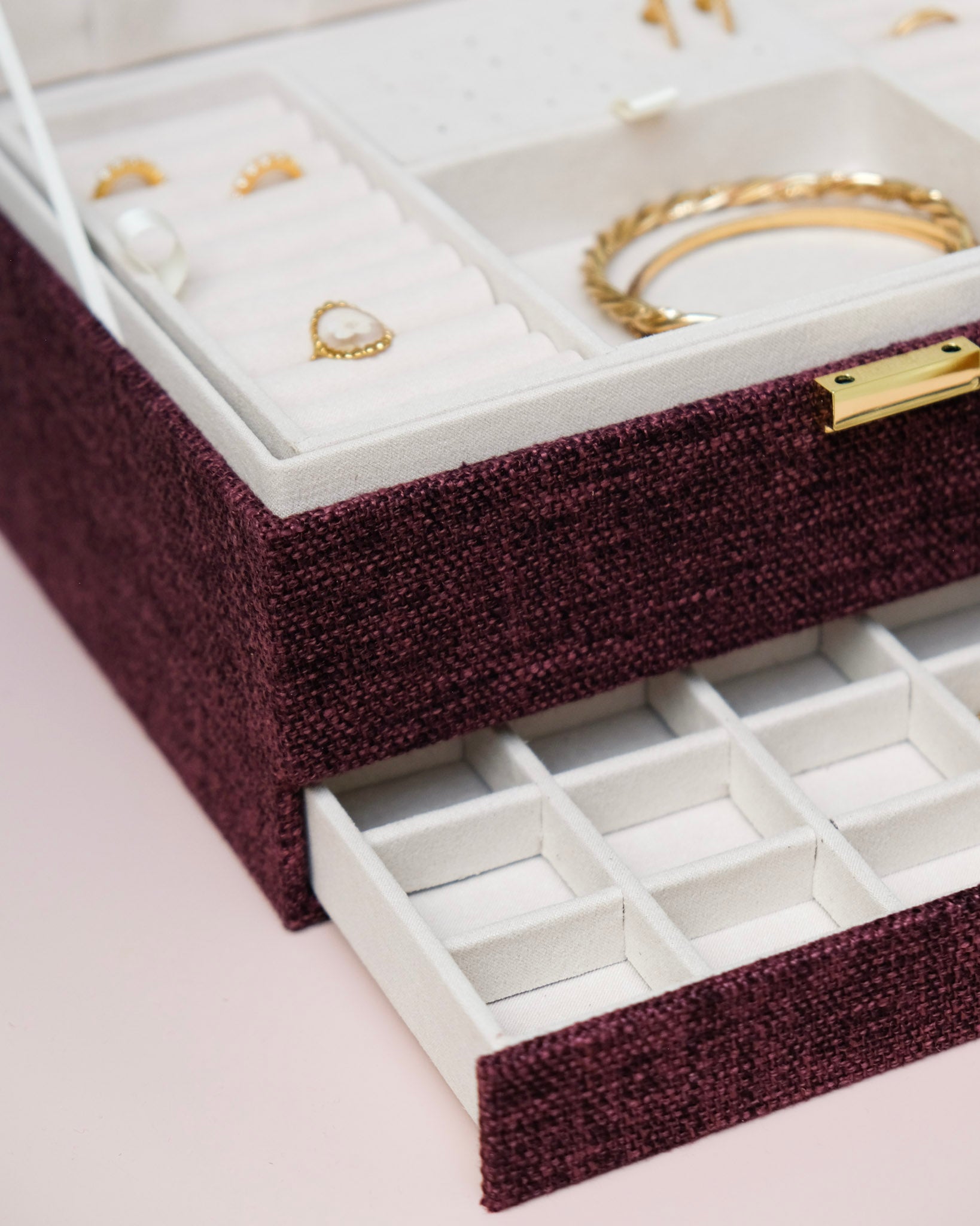 - Capacité : jusqu'à 49 bagues, 21 paires de boucles d'oreilles, 10 colliers et 6 (gros) bracelets