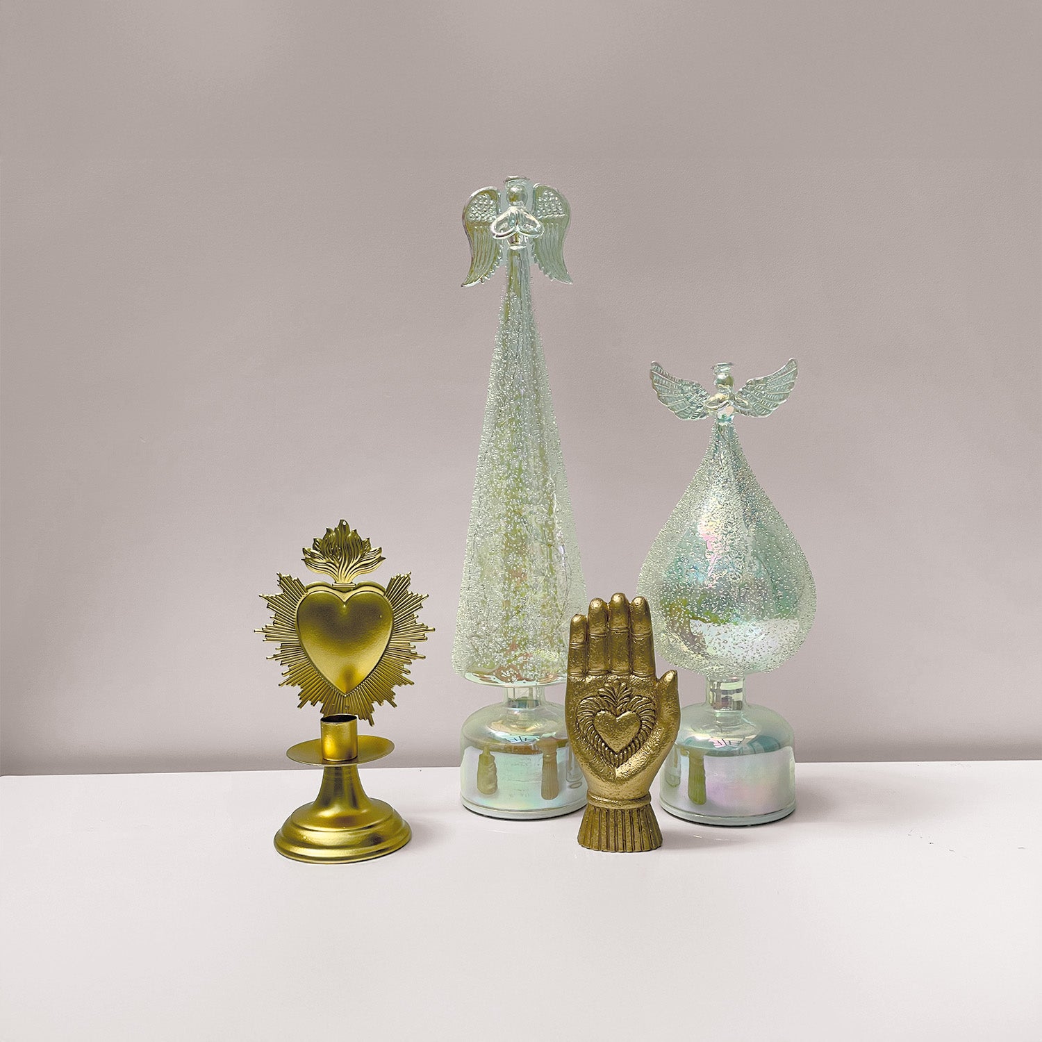 Bougeoir Ex-voto doré L12 P9 H21cm