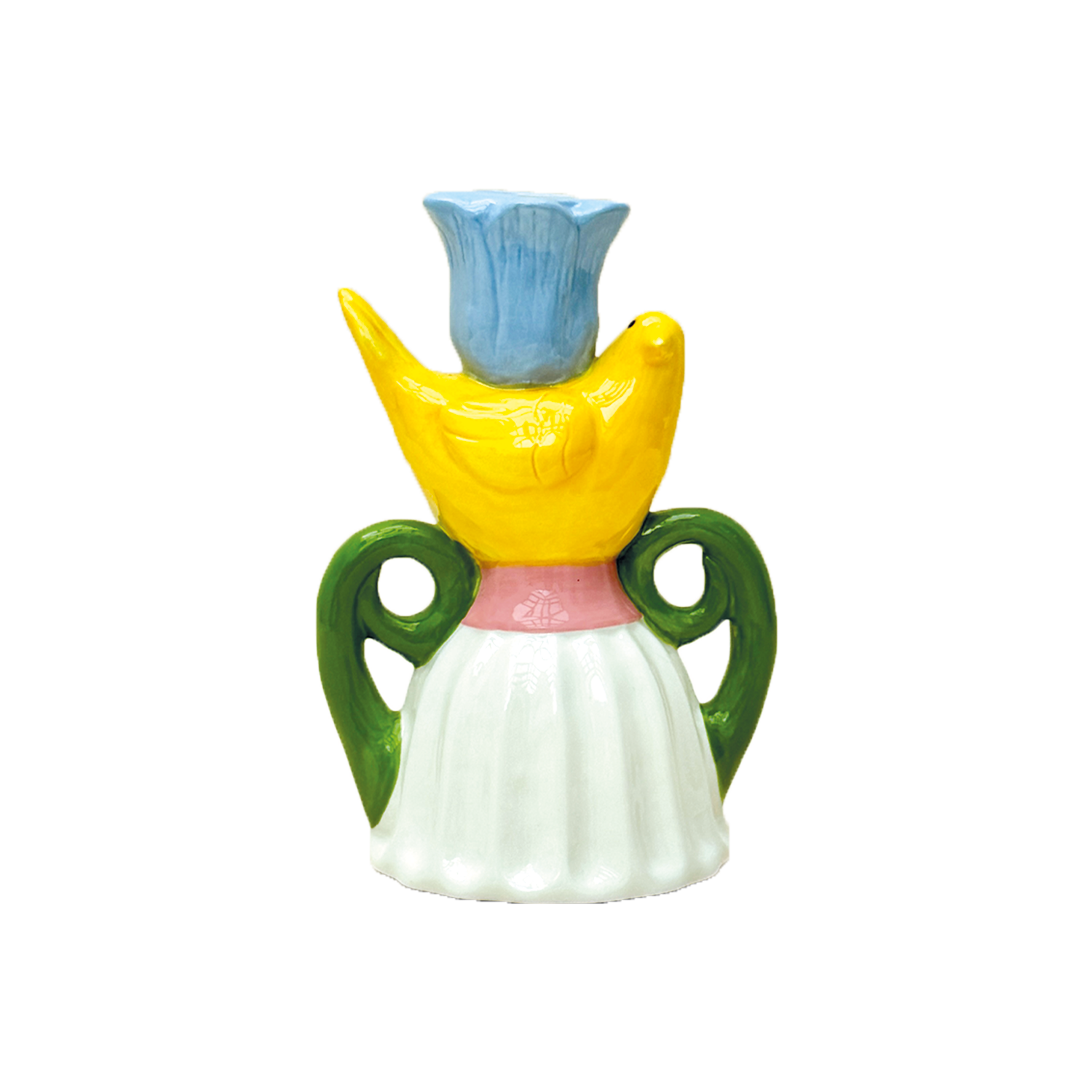 Bougeoir oiseau jaune L8,8 P11,2 H16,2cm