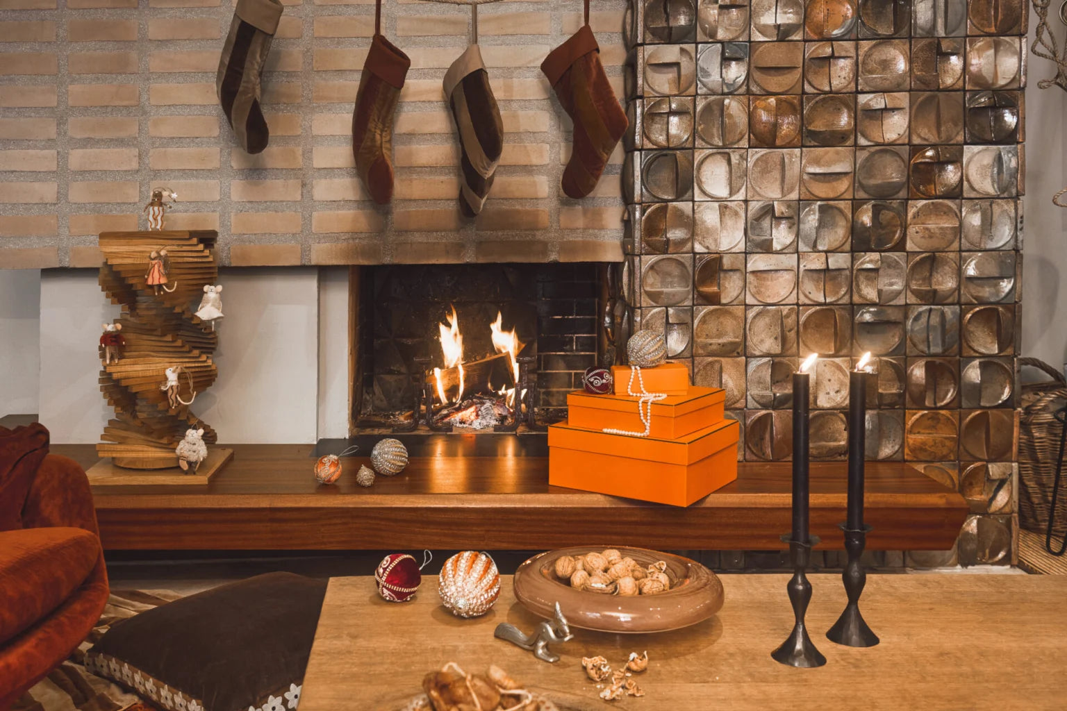 Chaussette de Noël rayée en coton. Assortie à la jupe de sapin de Noël Saga, elle vous mettra dans l'ambiance d'un merveilleux Noël.