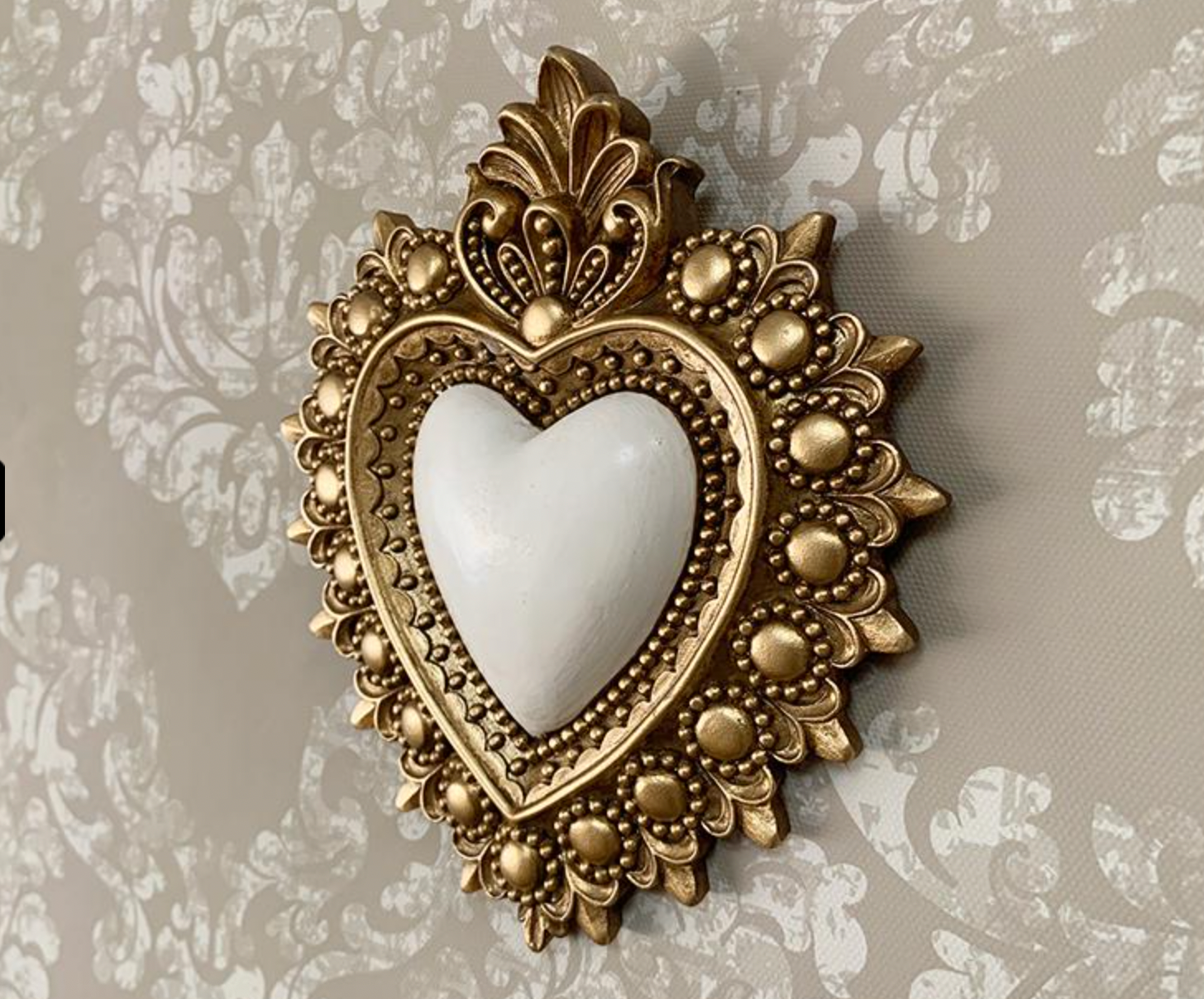 Jolie décoration murale ex-voto en résine dorée et blanc, dimensions 13x14,5cm. Avec son design unique, cet ex-voto apportera une touche d'originalité et de charme à votre intérieur. A accrocher au mur.