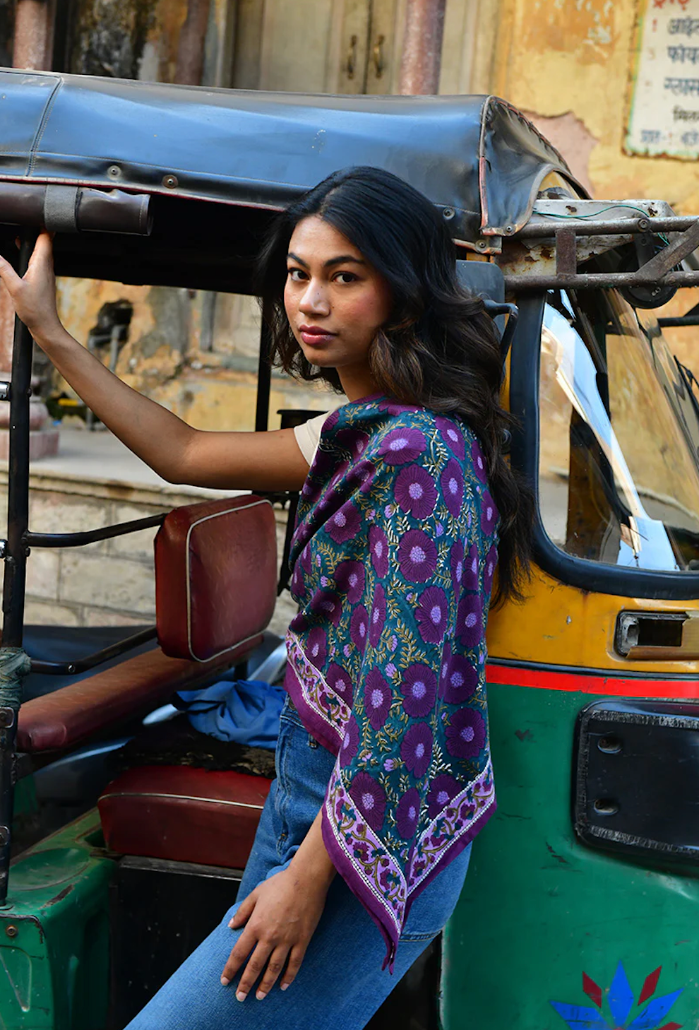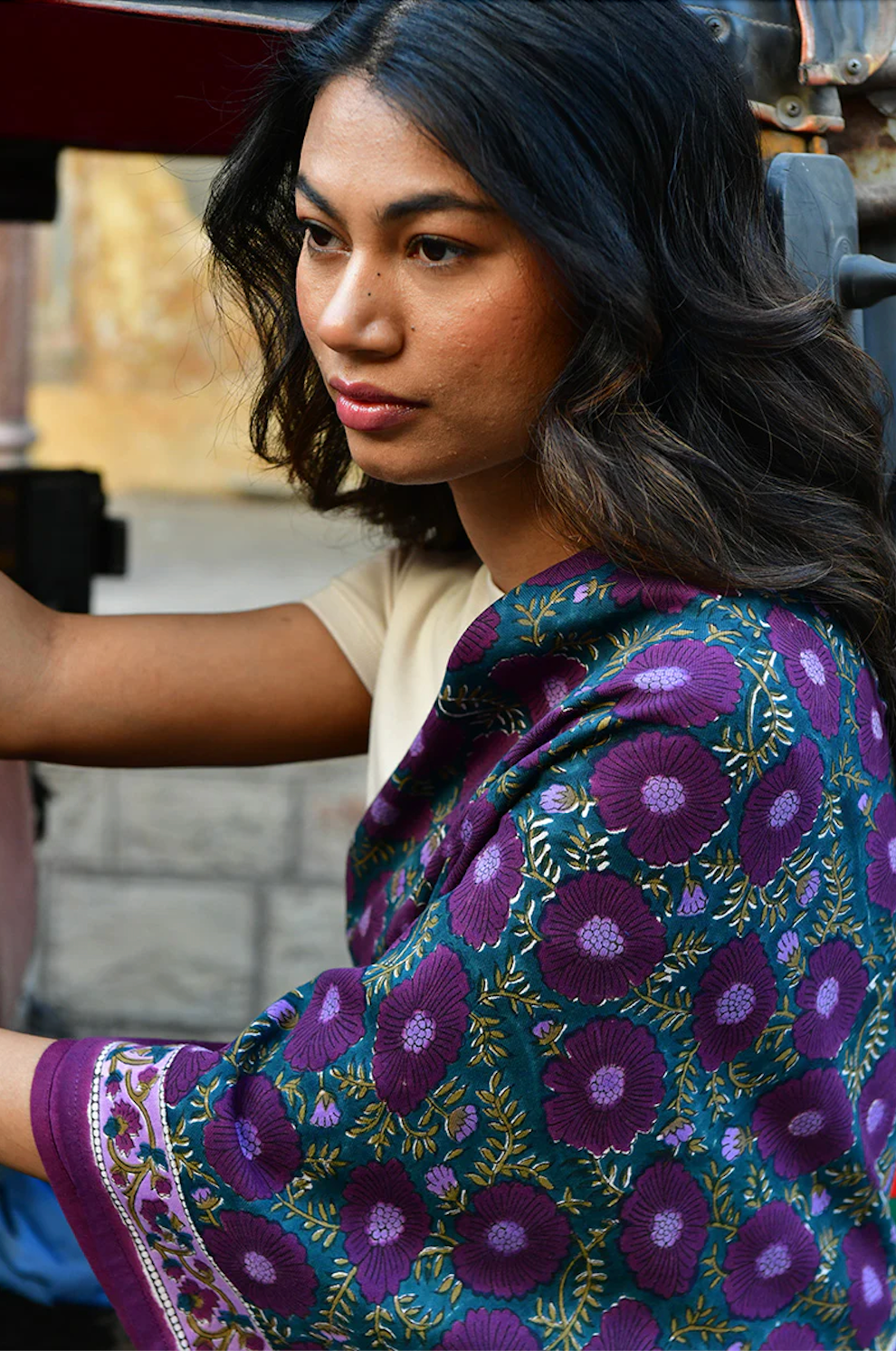 L'impression se fait selon le savoir-faire traditionnel de l’impression au block-print, ces tampons de bois taillés et sculptés à la main, trempés dans des encres d’origine végétale et apposés manuellement sur le tissu, en plusieurs couches, avec une maîtrise époustouflante.