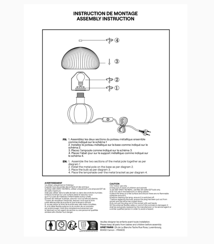 Lampe de bureau avec base et abat jour en verre. Compatible avec culot E27 max 25watt, vendu sans ampoule