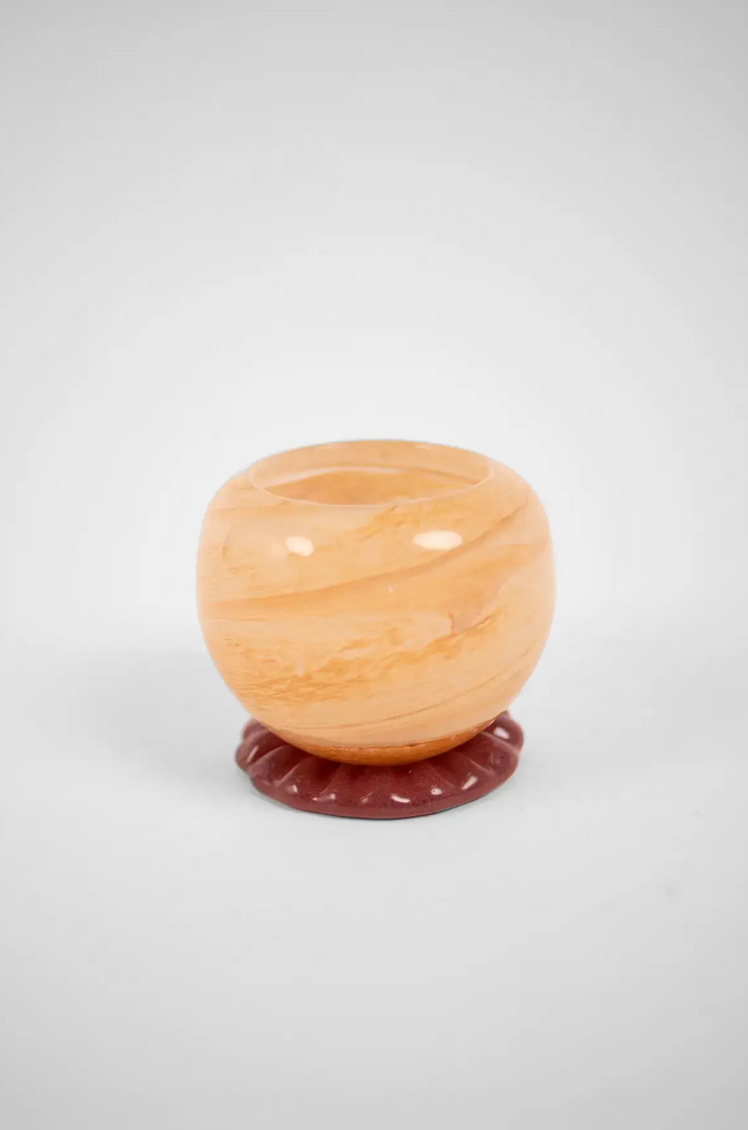 Photophore fait à la main avec une forme douce et romantique et un pied ondulé. Magnifique à combiner avec un vase du même style.