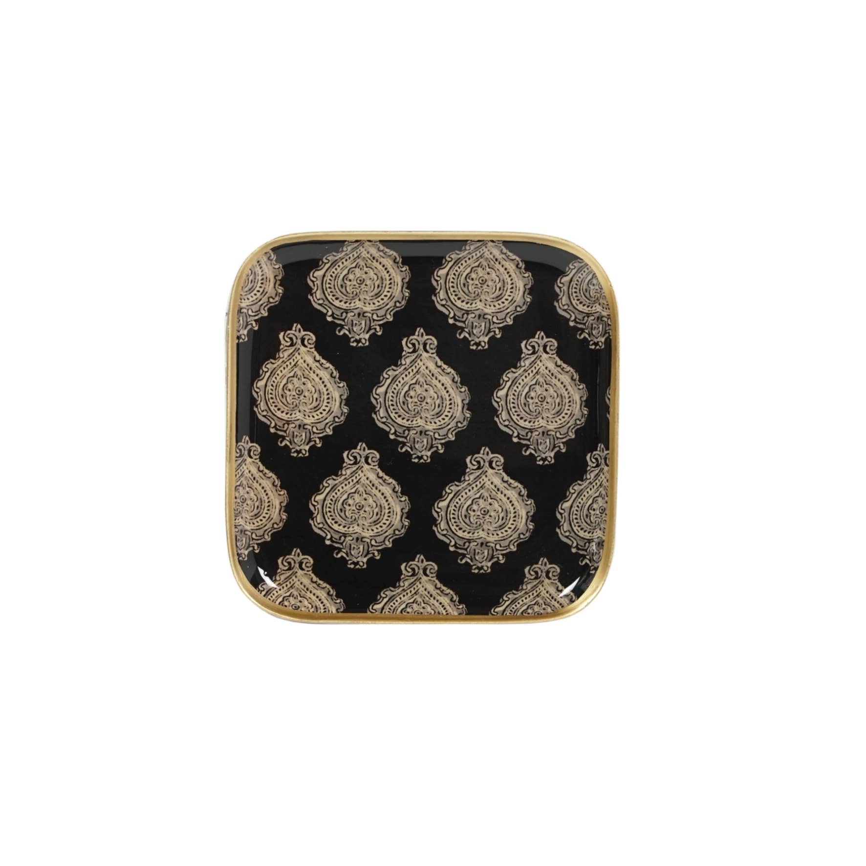 Plateau métal émaillé Arles noir 16x16, bordure dorée