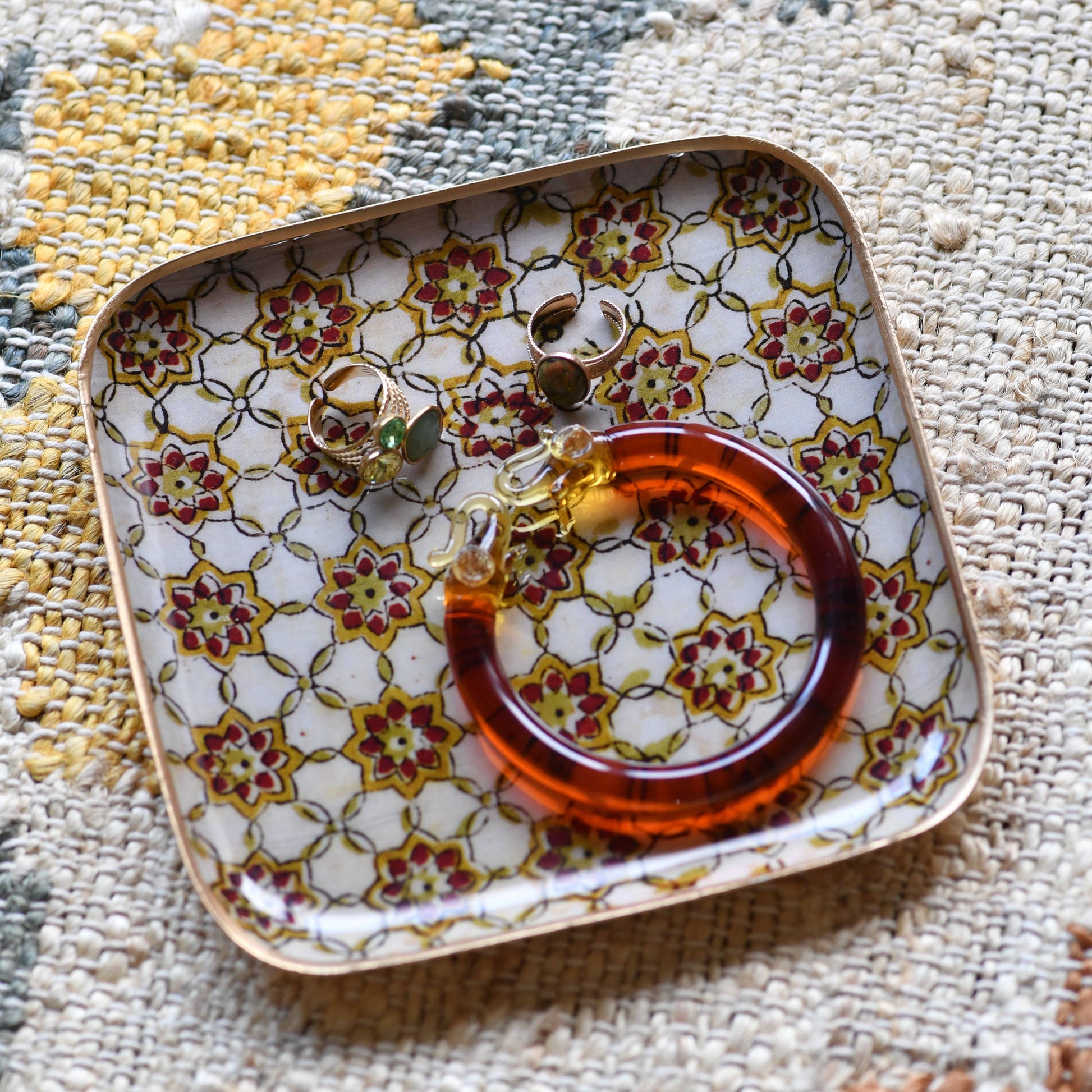 Plateau métal émaillé Zellige brick 16x16, bordure dorée